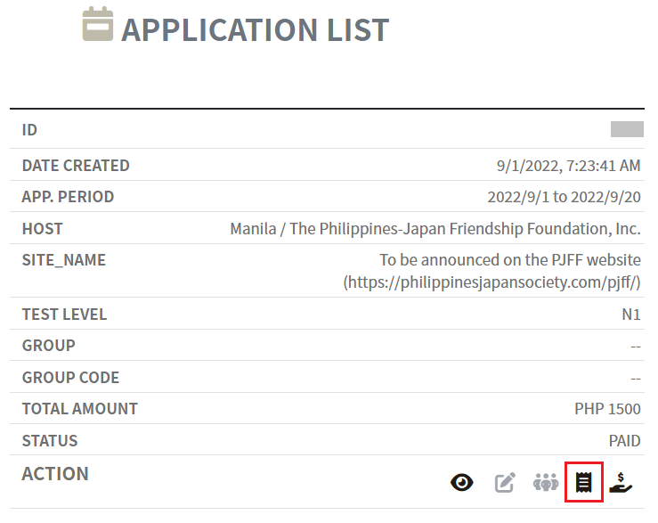 Once approved, you can visit the “Application List” page on the online portal to download your test voucher. Simply click the icon corresponding to “Print Voucher.” It is the second icon from the right.