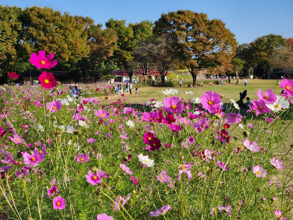 Showa Kinen Park hosts the Cosmos Festival from mid-September to late October. It has the largest and most impressive fields of cosmos in Tokyo, with millions of flowers covering 20,000 square meters in total.